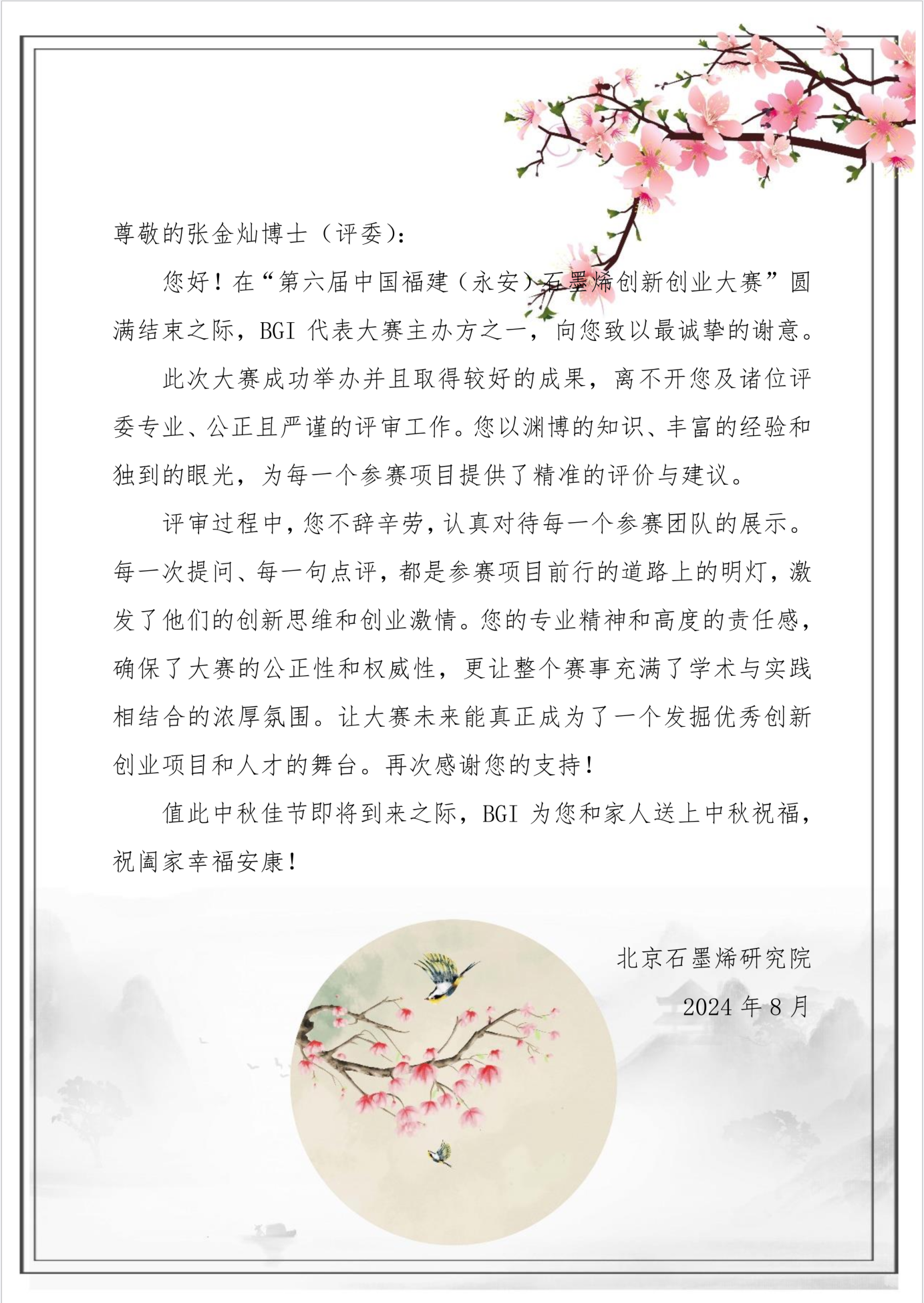 张金灿老师受邀担任第六届中国福建(永安)石墨烯创新创业大赛初赛评委